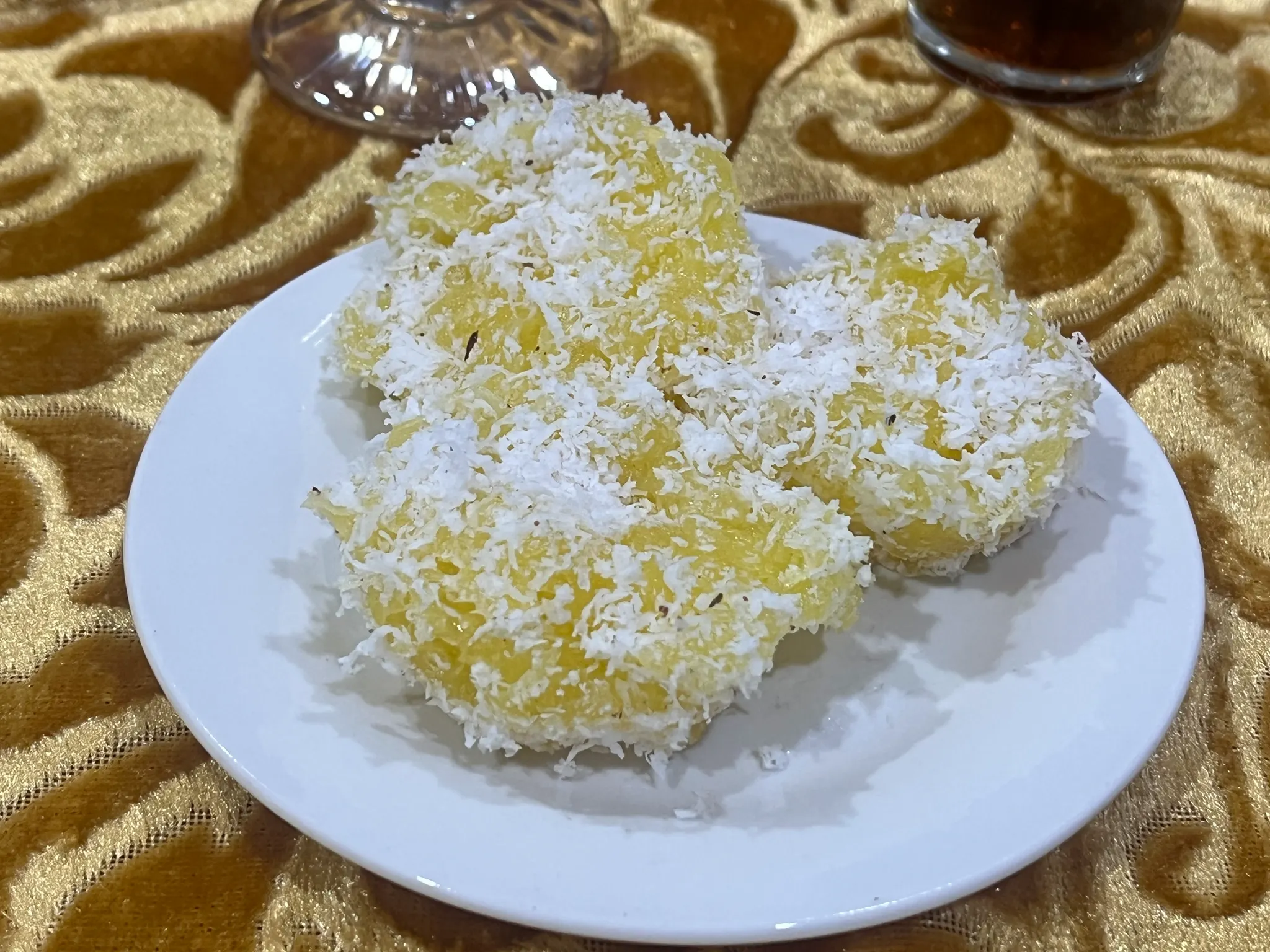 (아래 사진은 지난 이양식에서 새롭게 발견한 카사바로 만든 코코넛 떡입니다.)