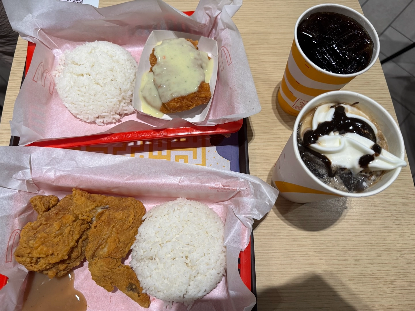 아무래도 필리핀에서는 빵은 간식으로, 밥은 식사로 여겨지는게 일반적이라 한 끼 식사를 위해서는 치킨 한 조각과 밥, 그리고 그레이비 소스가 함께 나오는 세트가 가장 인기 있는 메뉴입니다. 그렇다 보니 처음 필리핀에 와서 당연히 빅맥이나 치즈버거를 주문했는데, 주문도 오래 걸리고 맛도 그저 그런 기억이 있었습니다. 경험상 버거를 먹는 사람은 많이 잡아서 10%도 안 될거라 확신합니다.^^