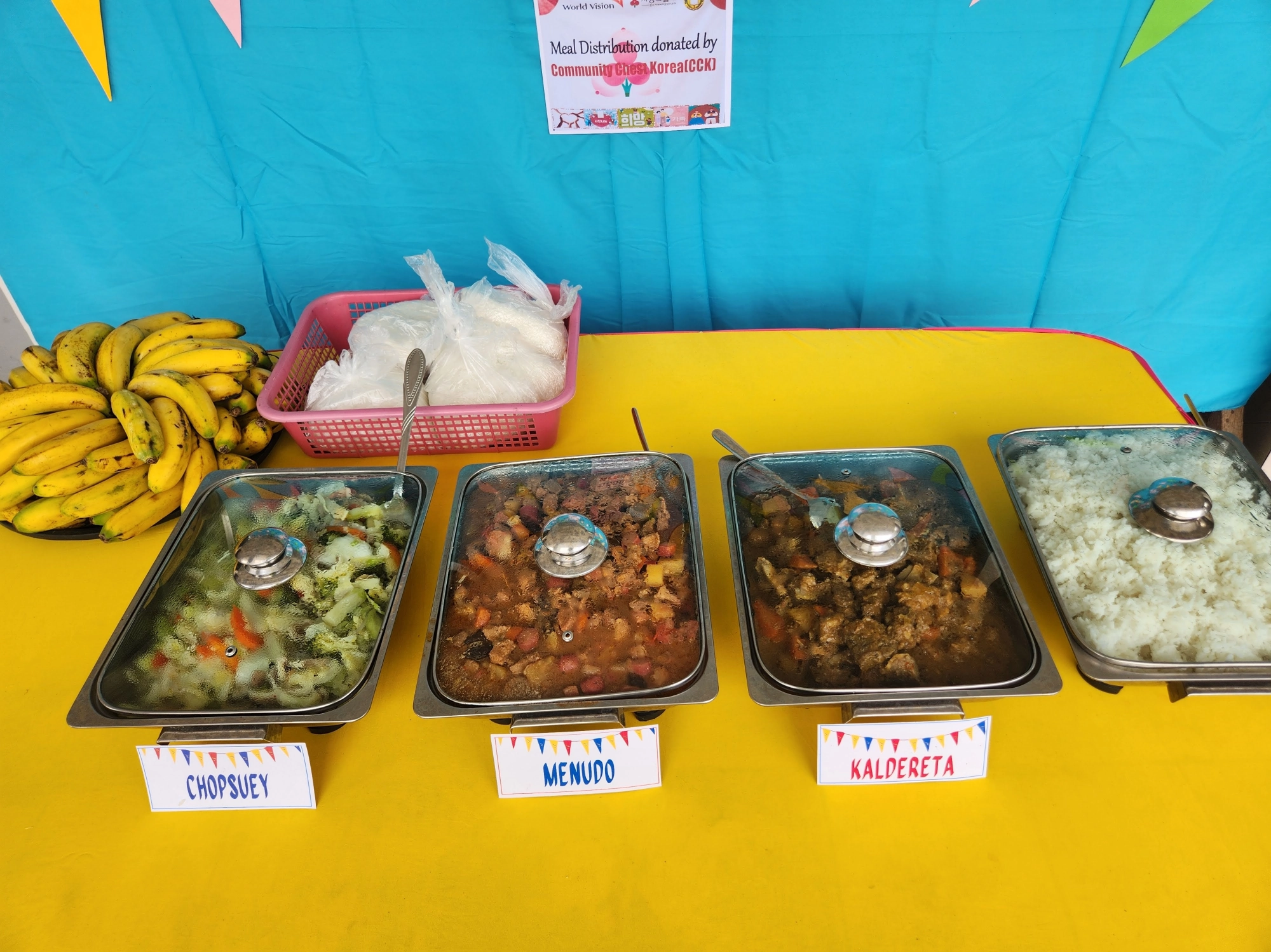 월드비전 교육 사업에서는 식사 지원을 하는 것은 아니고 학생들의 읽기 능력, 생활기술을 높이기 위한 다양한 활동을 진행하고 있어요. 한 번의 방문으로 모든 것을 보기는 어려웠지만 학생들이 선생님의 안내에 따라 차례차례 줄을 서서 음식을 받아 가는 모습, 그리고 밝은 표정으로 인사하고, 공부하는 모습을 보며 '아이들이 건강하고 바르게 자라고 있구나'라는 것을 느낄 수 있는 시간이었습니다.